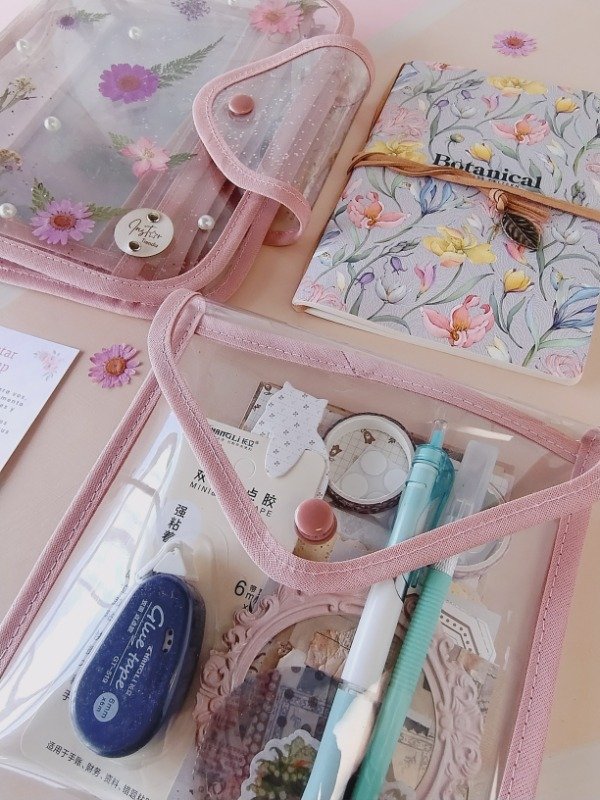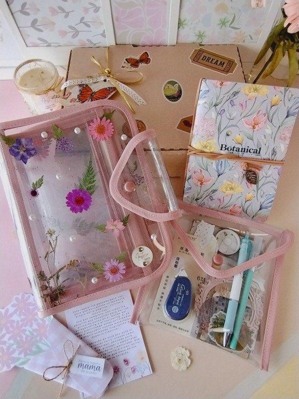 Entre todos los elementos se destaca el estuche Instar Fairy, transparente y decorado con flores, con bolsillos desmontables que permiten organizar cada pieza con comodidad y estilo.