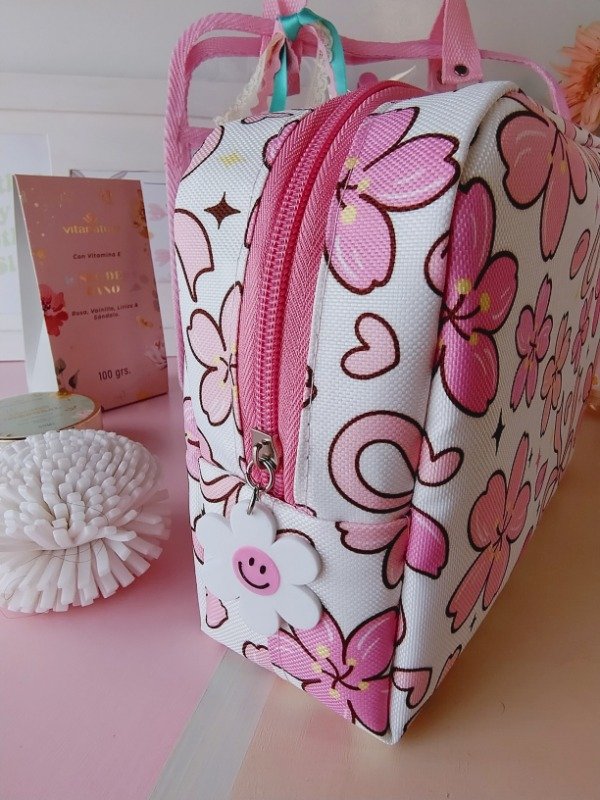 Incluye el neceser Clementina, confeccionado en cordura resistente, con estructura interna firme y forrado en tracker, acompañado por un deslizador de cierre en sintonía con su estampa. Cada detalle está cuidado para que sea tan funcional como hermoso.