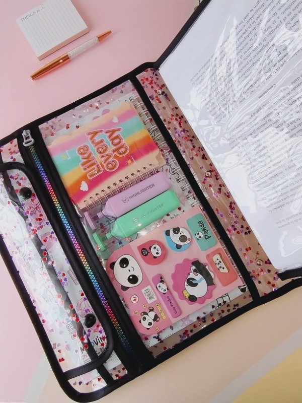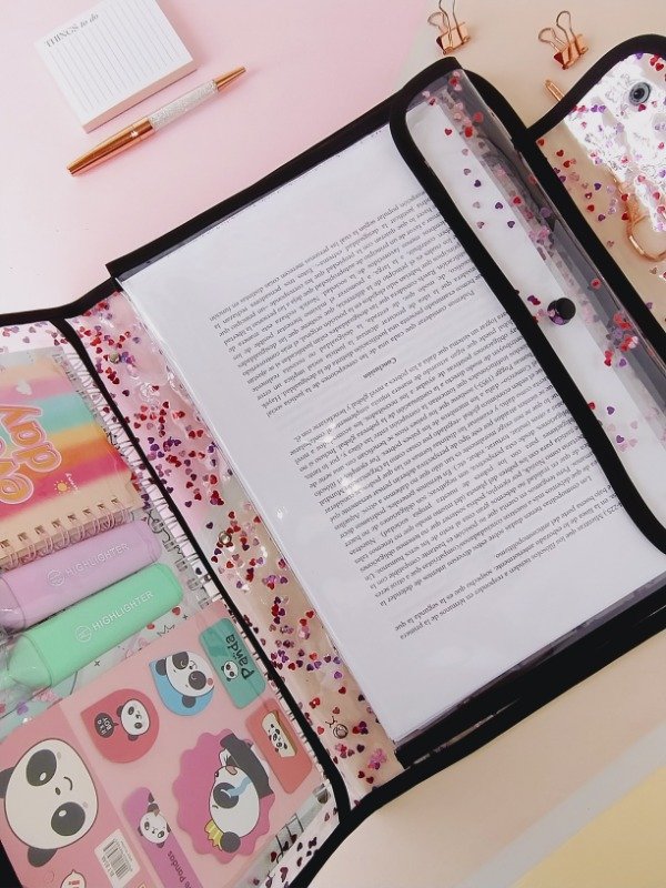 🩷 Su interior cuenta con una cartuchera incorporada y un accesorio que vas a amar: el sobre acordeón desmontable, que podés usar fijo dentro del organizador o retirarlo para llevarlo aparte. Ideal para guardar papeles, apuntes o recibos de forma ordenada.